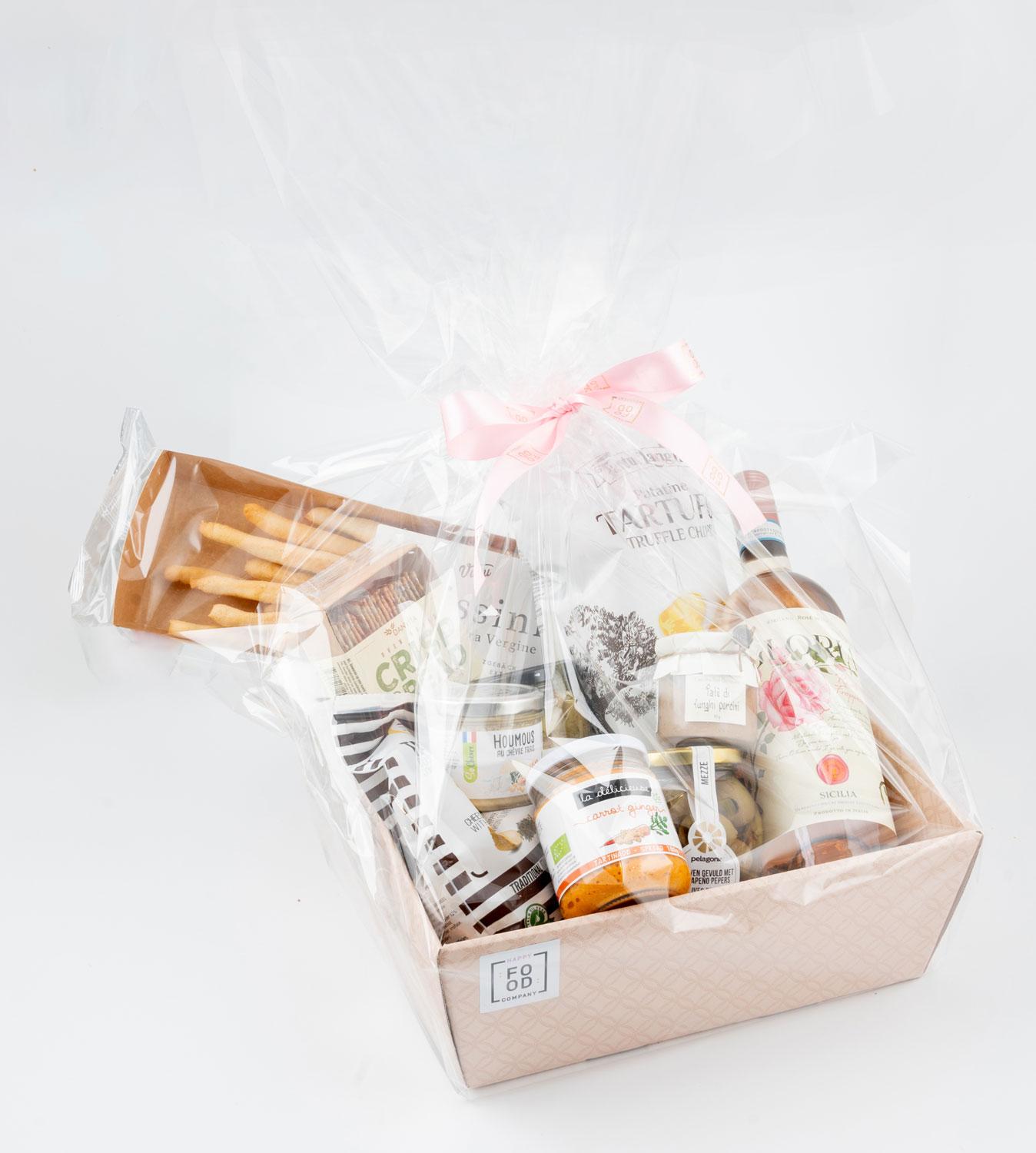 Bij Happy Food Company stel je eenvoudig geschenkmanden op maat samen, precies zoals jij wil. Van hartige lekkernijen zoals kazen en charcuterie tot zoete verrassingen met chocolade en pralines, we bieden een ruime keuze aan. Of het nu voor werknemers is of als relatiegeschenk, wij zorgen voor een mand die indruk maakt.